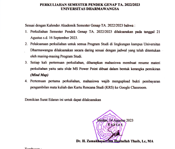 Rektor Universitas Dharmawangsa (Undhar) Medan Dr. H. Zamakhsyari bin Hasballah Thaib, LC, MA, bersama dengan panitia pengelola Merdeka Belajar Kampus Merdeka Undhar, melepas 28 orang mahasiswa yang lulus seleksi, program Merdeka Belajar Kampus Merdeka (MBKM) Semeseter Ganjil Tahun 2023. Pelepasan 28 orang mahasiswa yang lulus seleksi, program MBKM Semeseter Ganjil Tahun 2023, dilaksanakan di aula Universitas Dharmawangsa, Selasa (15/8/2023) yang lalu.Read More